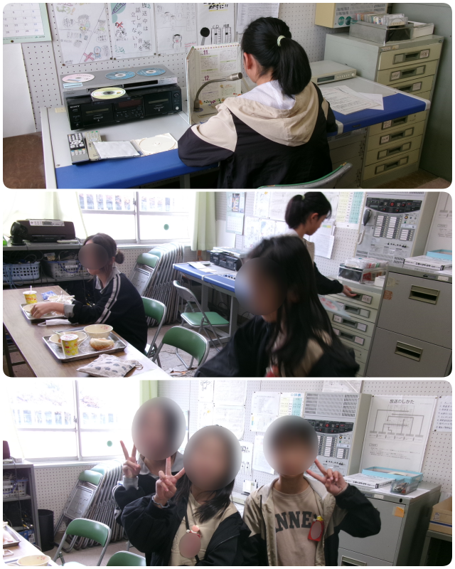放送委員さんは、3人ずつ、交代で放送を担当しています。