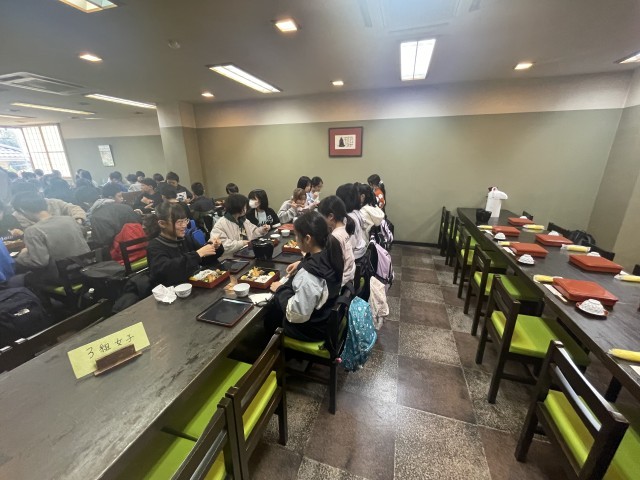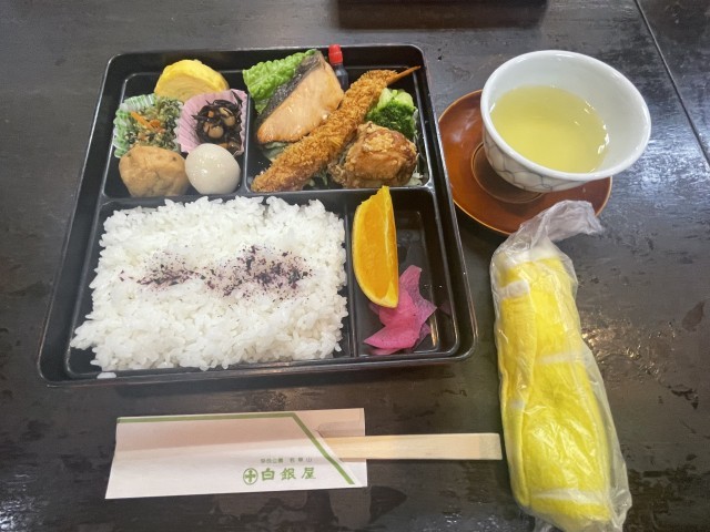おなかペコペコ やっと昼食会場の白銀屋。おいしくいただきました!おみやげも買いました!みんな元気です