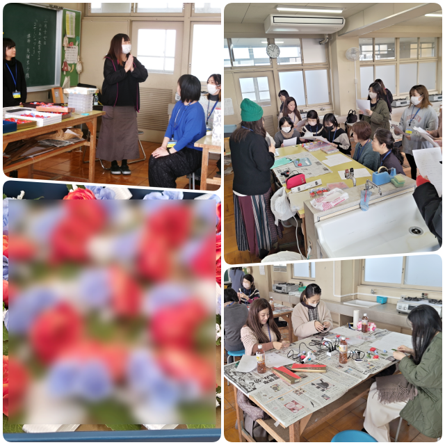 1月20日・2月17日の二日間にわたり、「ふれあい教育セミナー」として、6年生が卒業式で着用する「コサージュ」を作る会が開かれました。