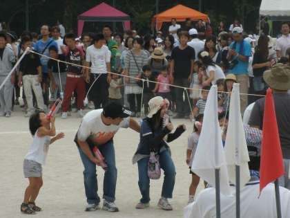 地域の方による「パン食い競争」です。