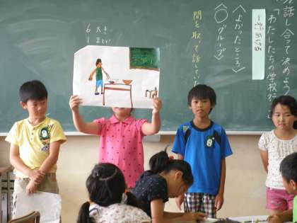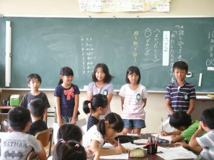3年生が、国語の授業で、「私たちの学校行事」についてまとめ、発表していました。