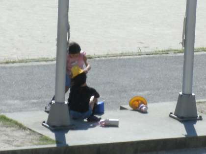 台風のために、給食が中止になりました。そのために、今日は弁当持参になりました。外で、昼食をとっているクラスもありました。