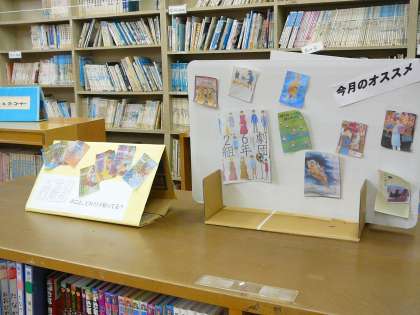 PTAのボランティアの方が,図書室をとても楽しい部屋にしてくれています。せっかくのコスモス読書期間です,一度図書室にも足を運んでみてください。低学年図書室に新設された「ゾロリシリーズ」のコーナーは,人気が高く,貸し出し中の本ばかりです。