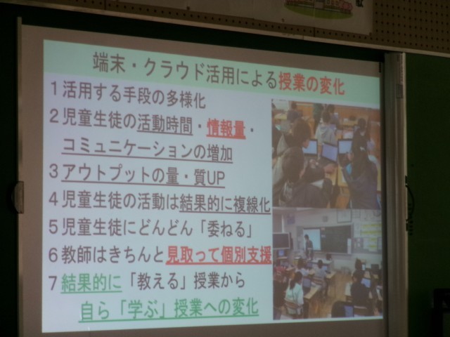 研修では、単なるツールの導入ではなく、低学年からの基礎的な学習習慣や教科書を読み解く力を土台とした取組、子どもたちが自ら学習手段を選択し、互いの考えを参照しながら学びを深めていく姿を目指し、教師の役割も「教え込み」から、一人ひとりの思考を支える「見取り」へとシフトしていく必要があります。