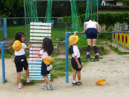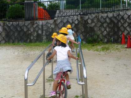 鉄棒や一輪車の練習をしていました。