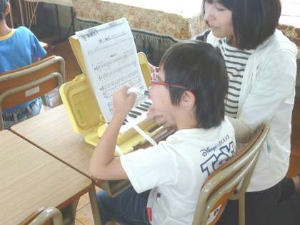 3−2は、音楽で、鍵盤ハーモニカを練習していました。