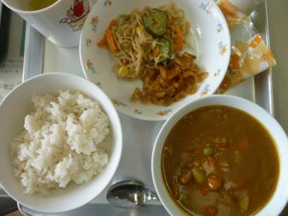 麦ごはん 牛乳 カレーシチュー 切り干し大根とツナのサラダ 福神漬け ミックスナッツ
