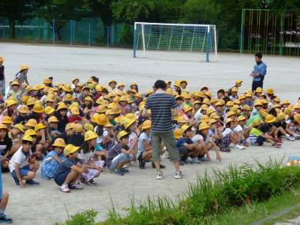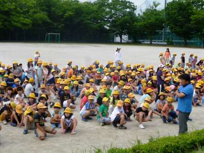 学年・クラスの枠を超えて、全校で、ソフトドッジボールをしました。