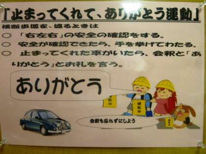 「止まってくれて、ありがとう運動」のポスターが、教室や廊下の掲示板にはってあります。