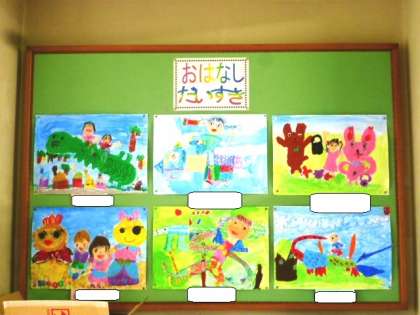 1階の東のつきあたりに、1年生の絵が掲示してありました。