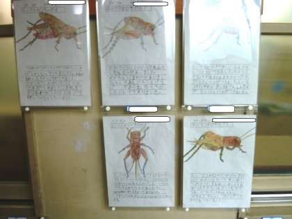 1−2の廊下に、生活科でスケッチしたものが掲示してありました。