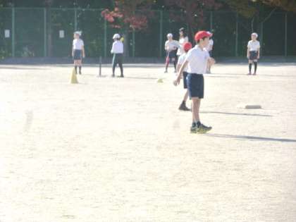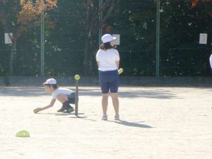 5−1は、体育で、ティーボールをしていました。