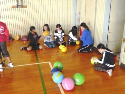 体育委員会は、ボールに空気を補填していました。