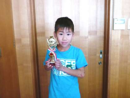 2年生の男子が、水泳の大会で、大会新記録を記録したと報告に来てくれました。これを励みに、がんばってださい。