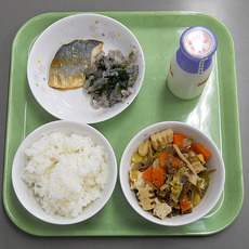 ごはん 牛乳 すきやき ぶりのてりかけ だいこんのゆかりあえ