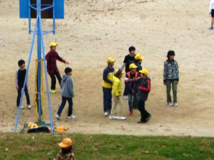 曇り空でしたが、たくさんの子が外で遊んでいました。