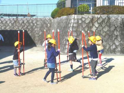竹馬の練習をしていました。