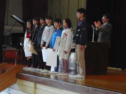 作品募集や各種大会での入賞者の表彰式がありました。