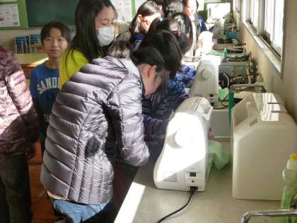 5−2は、家庭科で、ミシンの使い方の練習をしていました。