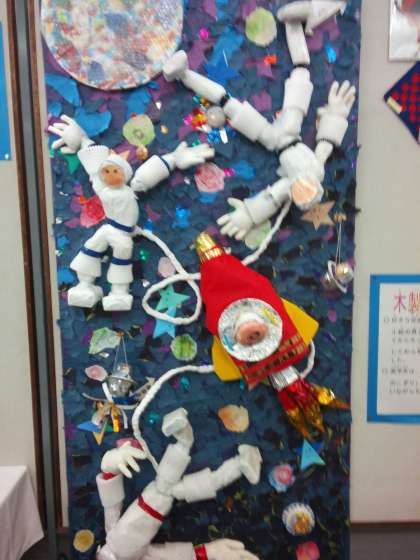 市庁舎の12階の会議室に、5組6組の子たちの作品が展示してあります。