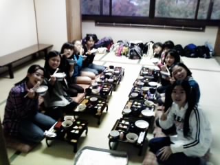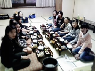 おはようございます。修学旅行2日目、外は残念ながら雨が降っています。子どもたちは夜なかなか眠れずちょっとねむそうです。しかし朝食を前にすると元気回復しっかり食べました。
