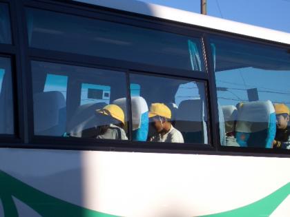 8時50分、3年生が校外学習に出かけました。