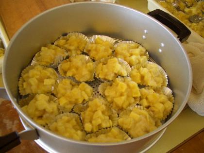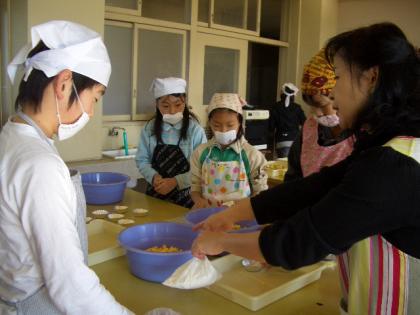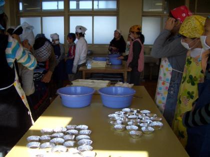 鬼まんじゅう作り 6年 公開日 2008/11/26 更新日 2008/11/26 学校行事 3,4時間目には、5年生が切った芋を6年生とPTAのお母さん方で鬼まんじゅうにしました。さとうと小麦粉をまぶした芋をアルミのカップに注ぎ蒸したら、できあがりです。子どもたちは1時間ずつで終わりですが、PTAの皆さんには、午後までかかって仕上げていただきました。ありがとうございました。 明日のわくわく祭りが楽しみです。