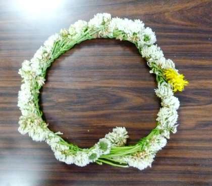 とてもていねいに作られていました 公開日 2016/05/12 更新日 2016/05/12 学校の窓 4年生の女子が、遠足で、しろつめくさで花輪を作って、プレゼントしてくれました。とても、ていねいに作ってありました。