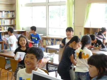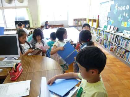 3−1は、図書館で、本を借りていました。