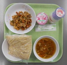 中華めん 牛乳 しょうゆラーメンスープ 小魚と大豆のナッツからめ ピーチゼリー