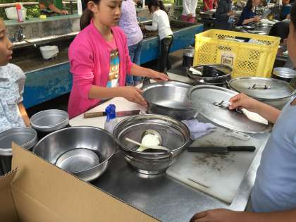 次は調理の係です。 みんなで協力して,材料を切りました。