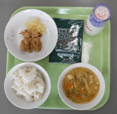 麦ごはん 牛乳 ごじる まぐろの甘辛煮 きざみたくあん 手巻きのり
