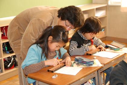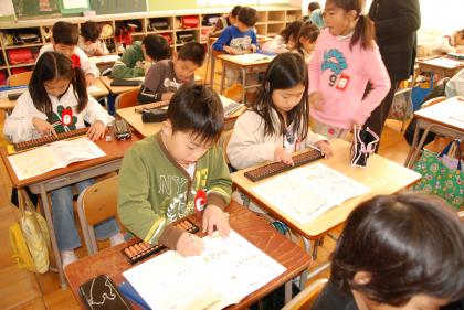 そろばん教室 公開日 2009/01/16 更新日 2009/01/16 学校行事 3年生の算数で珠算の学習があります。 15,16日の2日間、日本珠算連盟愛知県珠算連盟連合会の波多野さん他3名の方にゲストティーチャーとしておいでいただき、そろばん教室を行いました。