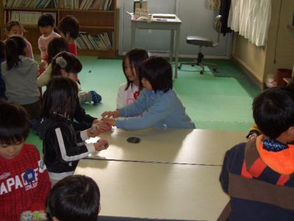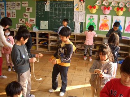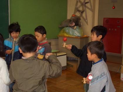 1,2年生活科 昔遊び 公開日 2009/01/19 更新日 2009/01/19 学年 1,2年生の生活科の学習で昔遊びをしました。 5,6組と低学年図書室、1年生の教室を使い6つの遊びを楽しみました。