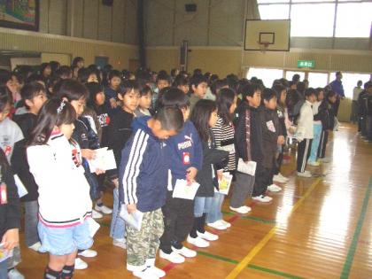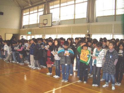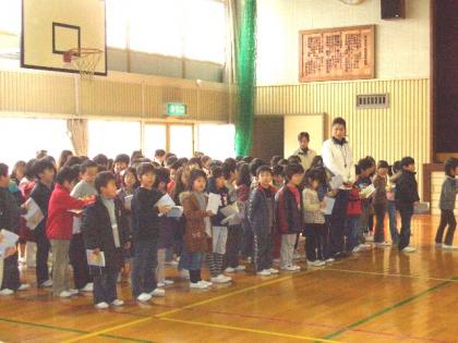 歌声集会 公開日 2009/02/09 更新日 2009/02/09 学校行事 今年度最後の歌声集会を行いました。 「Tomorrow」と「たんぽぽ」を歌いました。 元気の良い、きれいな歌声が響いていました。