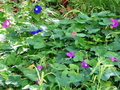 草置き場に、きれいに花が咲いていました。