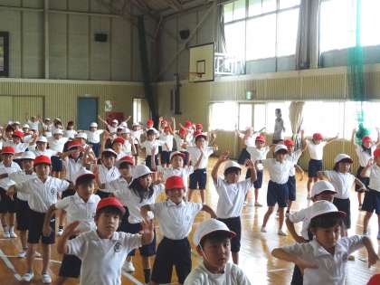 12年生は、合同で、運動会の練習をしていました。