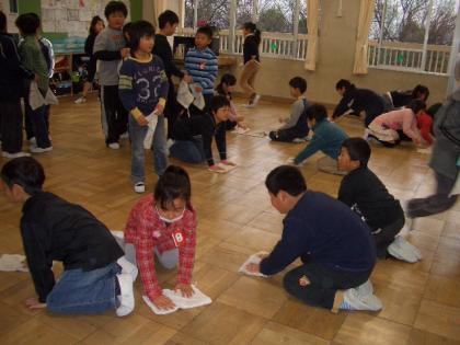 月曜日の朝、みんなで床を磨いてピカピカにしました。