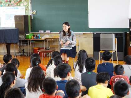 6年生は、声優の桑島法子さんをお招きして、朗読してもらったり、質問に答えてもらったりしていました。