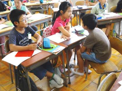 3−3は算数で、話し合い活動をしていました。