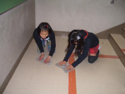2月27日の掃除の様子です。27日の帰りに廊下のワックスをかけるので、掃除の時間に一生懸命水拭きをしました。