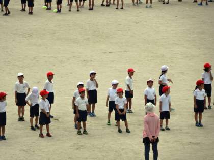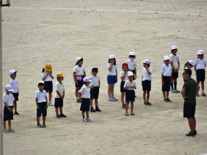 12年生合同で、運動会の練習をしていました。