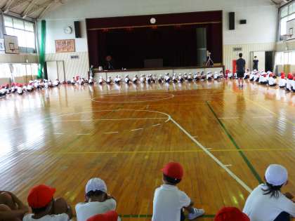 12年生は、体育館で、運動会の練習をしていました。