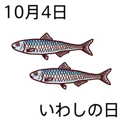 今日(10/4)は、いわしの日です 公開日 2016/10/04 更新日 2016/10/04 学校の窓 1985(昭和60)年に、いわし食用化協会が制定しました。「い(1)わ(0)し(4)」の語呂合せからです。
