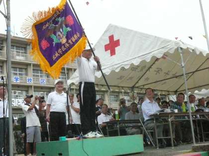 地域対抗の優勝旗が、新調されましたので、お披露目がありました。