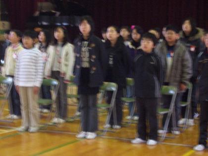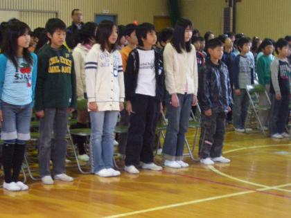 卒業式練習 公開日 2009/03/13 更新日 2009/03/13 学校行事 合同練習の回を重ねるごとにだんだん声が出るようになってきました。 歌は、6年生が「旅立ちの日に」4,5年生が「大空が迎える朝」を歌います。 人数の差もありますが、6年生の声が少し小さいのが残念です。 本番には、立派な歌声を聞かせてほしいですね。