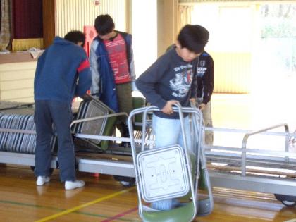 18日の午後と19日の朝、5年生が心をこめて式場の準備をしました。