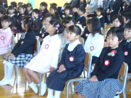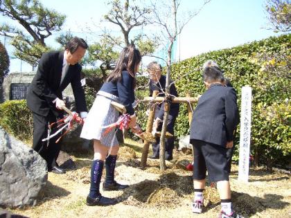 入学式 公開日 2009/04/06 更新日 2009/04/06 学校行事 80名の新1年生を迎えて、入学式が行われました。 今年は入学記念植樹も行われました。 明日からは通学班で登校です。交通安全に十分気をつけてください。