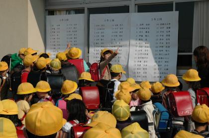 始業式 公開日 2009/04/07 更新日 2009/04/07 学校行事 昇降口にクラス分けの紙が張り出されました。 みんなドキドキしながら自分のクラスを確認して、体育館へ入りました。 4月から、2年生に4人、3年生に2人、4年生に1人、5年生に1人、合計8人の新しい友だちが増えました。