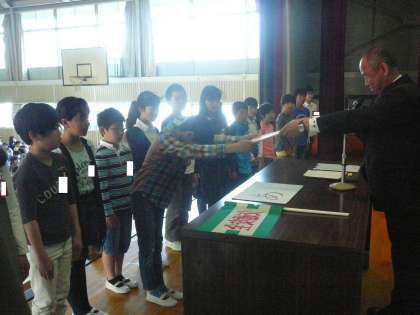 前期学級委員の認証式 公開日 2017/04/17 更新日 2017/04/17 学校の窓 4年生以上の前期学級委員の認証式が行われました。名前を呼ばれた全員がしっかりとした返事をすることができました。